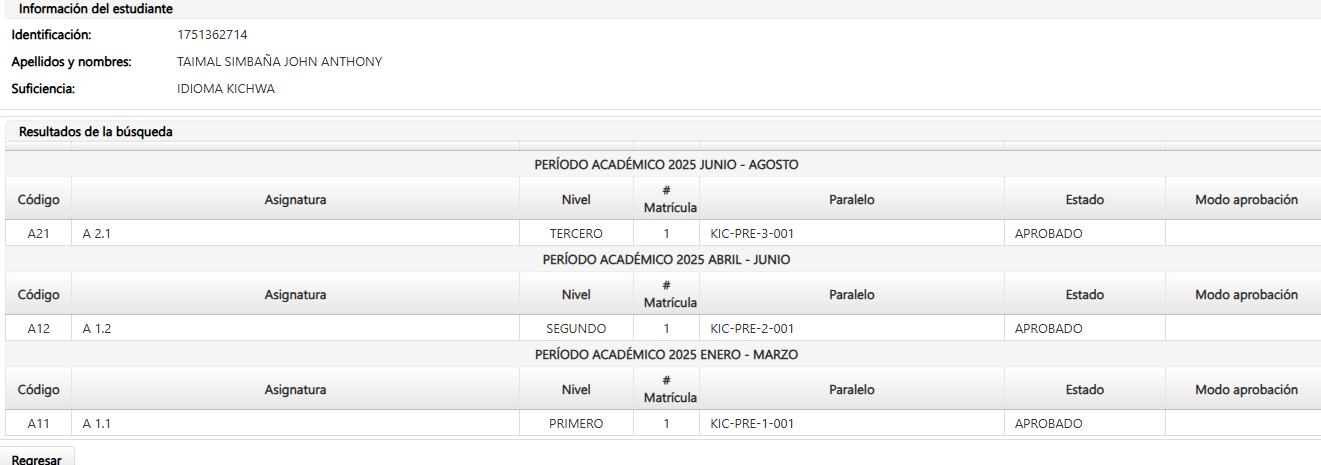1751362714 TAIMAL SIMBAÑA JOHN ANTHONY, estaba en Inglés y en la actualidad en Kichwa