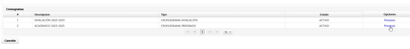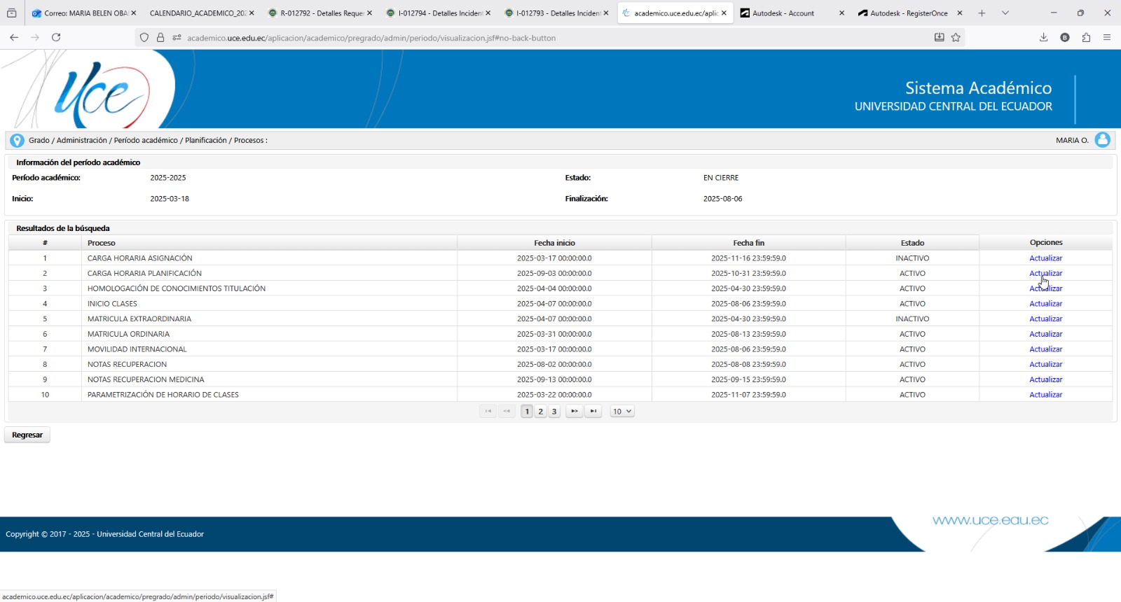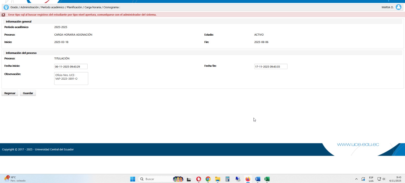 Estimado Freddy por favor tú ayuda eliminando o desactivando la activación de cronograma de carga horaria para periodos anteriores que lo hacen desde soporte técnico: