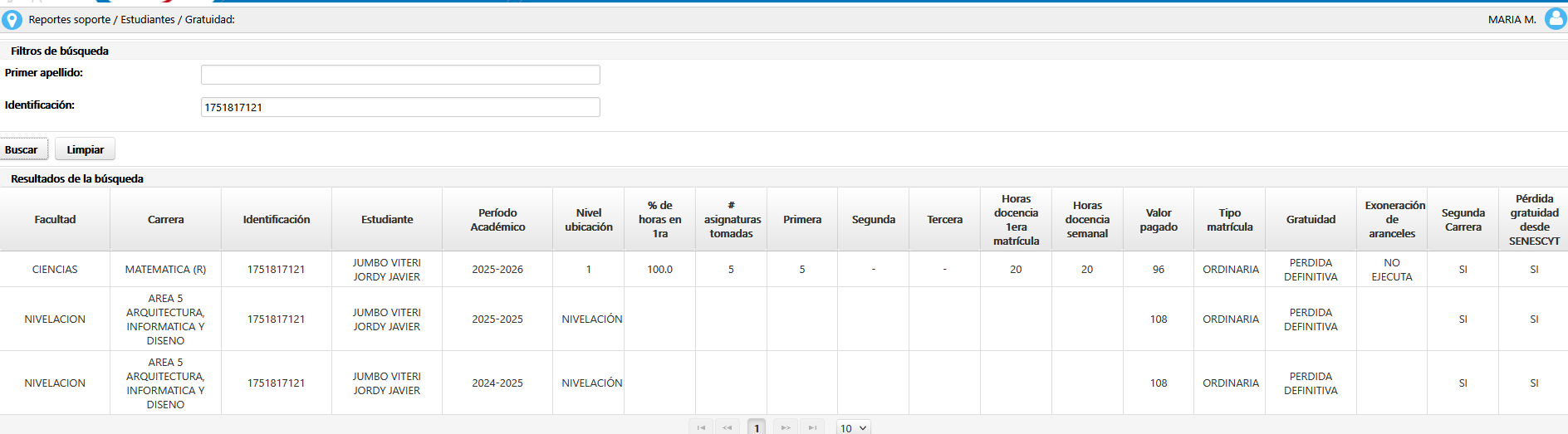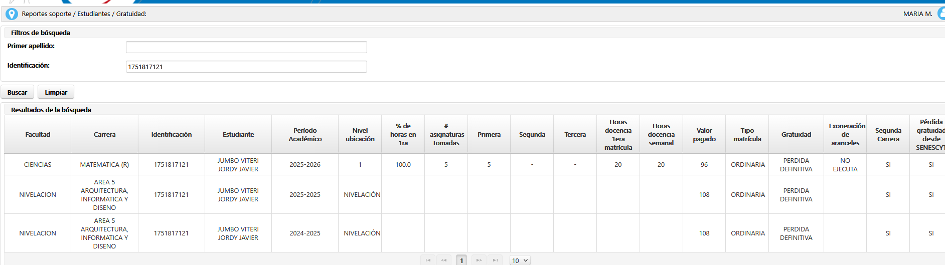 Favor habilitar la gratuidad del estudiante con identificación No. 1757817121, pedido realizado mediante ticket Mejora - Mant. preventivo #7513 Oficio Nro. UCE-DGA-2025-2204-O