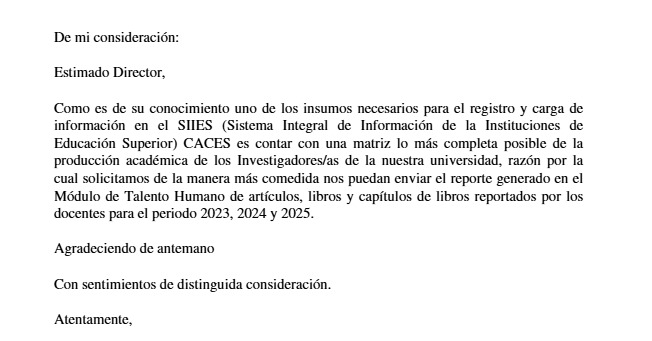 Estimado Vini, por favor tú ayuda generando un reporte de lo registrado por los docentes donde se muestre los artículos, libros y capítulos del sistema de tthh, como no se tiene por periodo generar lo que este registrado
