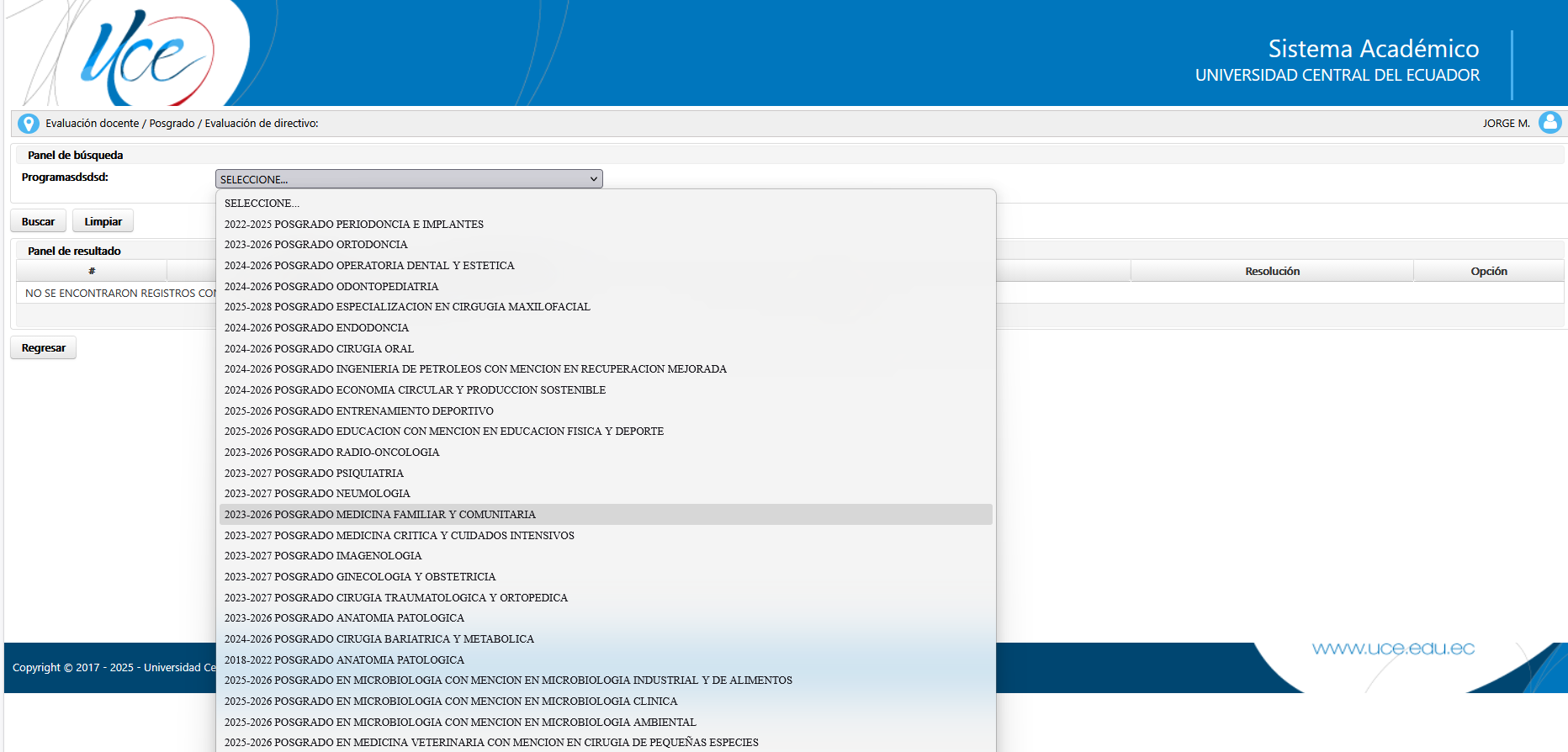 En la opción ejecuta impugnación igual mostrar solo los programas que corresponde a la facultad