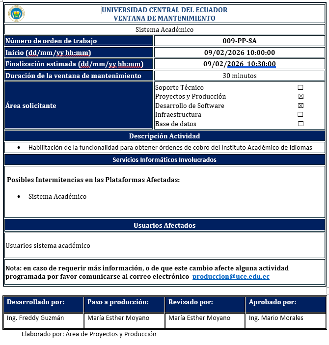 Ventana de mantenimiento 09-02-2026